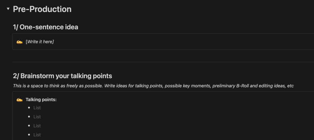 This template breaks down the scriptwriting process into manageable chunks, aided by frameworks + checklists.