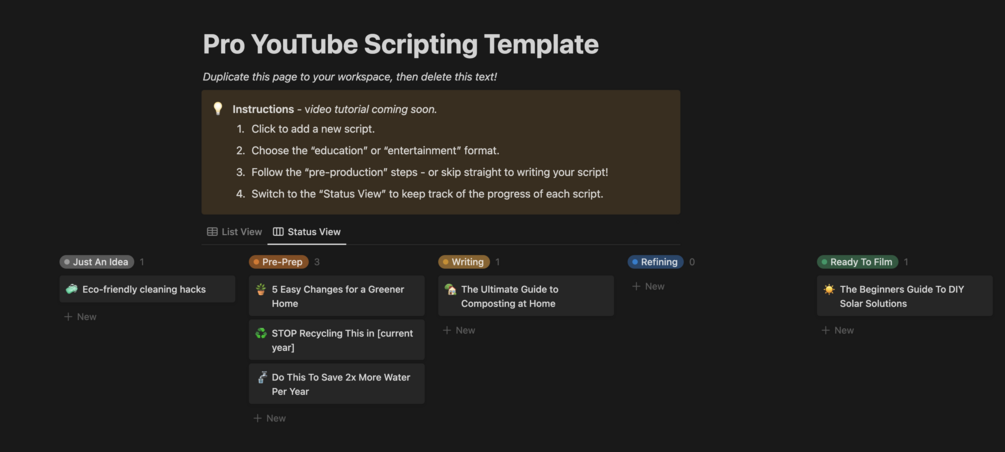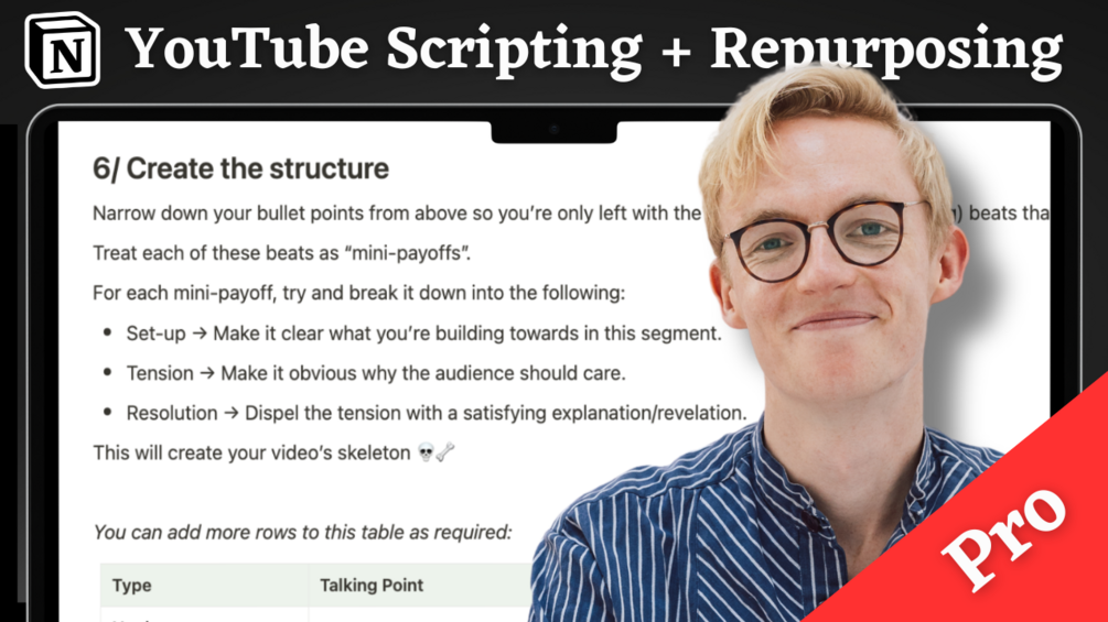 20,000,000+ views later, this template is not only designed to create a logical scriptwriting workflow - it distils the most important principles for writing an engaging script and walks you through how to apply them.