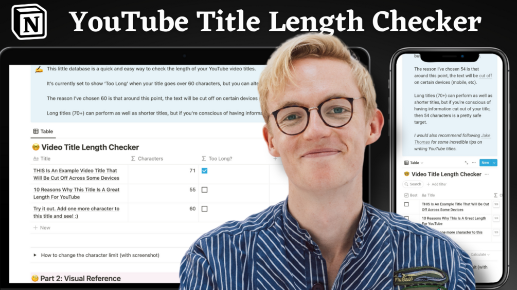 A free Notion table that tells you when your YouTube title is too long.